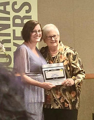Artistic Director, Rachel Jackson and Interim Board President, Linda Matlock accept the California Lawyers for the Arts 2025 Artistic License Award on behalf of the chorus on June 1st